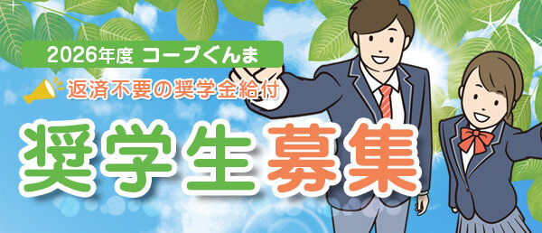 コープぐんまのイベント&ピックアップ 2026年度 奨学生を募集しますコープぐんま奨学金制度は、ひとり親家庭の高校生を対象とした、返済不要の給付型奨学金です。 記事を読む 「るっく&WALK」in 上野村コープぐんまの広報誌「ほっと」に連載中!群馬県内のミニミニお出かけ、街歩きレポートです。地図も載っています。 記事を読む コープぐんまは、県内で活動している「子ども食堂」へ支援を行っています。この度、2026年度 子ども食堂新規支援団体を募集します。 記事を読む 他のイベント&ピックアップを見る 閉じる