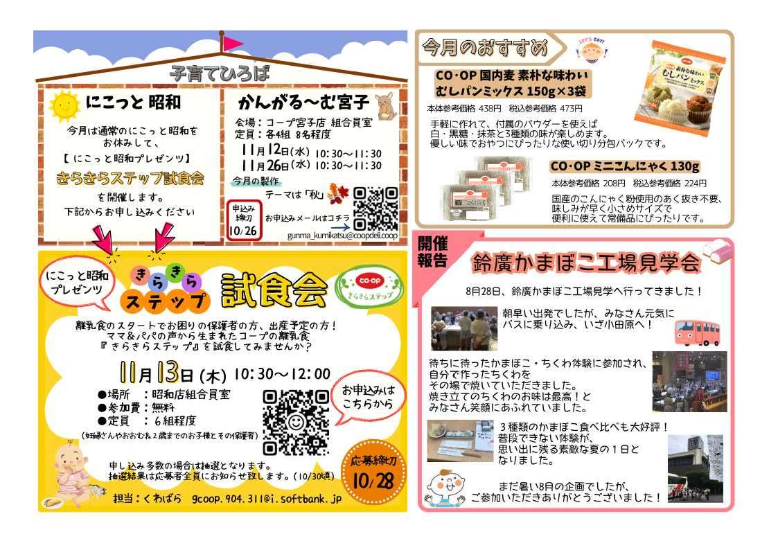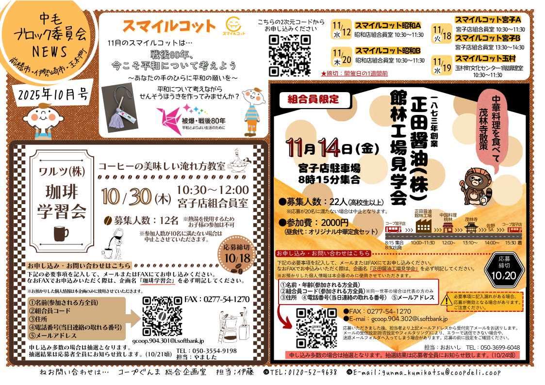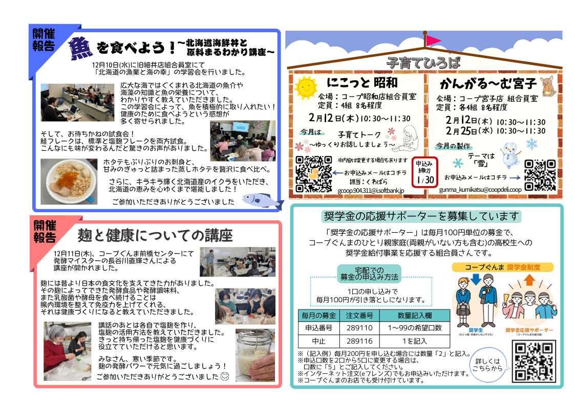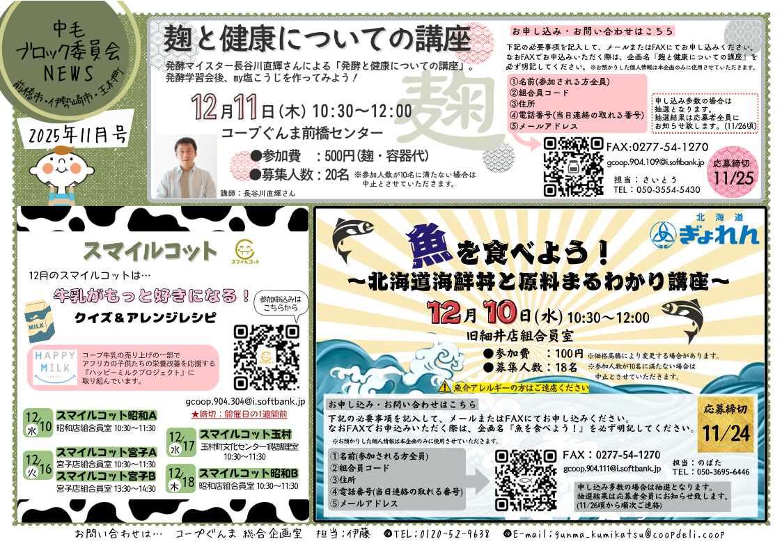 ブロック委員会ニュースは、コープぐんまの各ブロック委員(組合員)が月一回発行する、地域のイベントやくらしに役立つ情報、機関運営等をお知らせするニュースです。