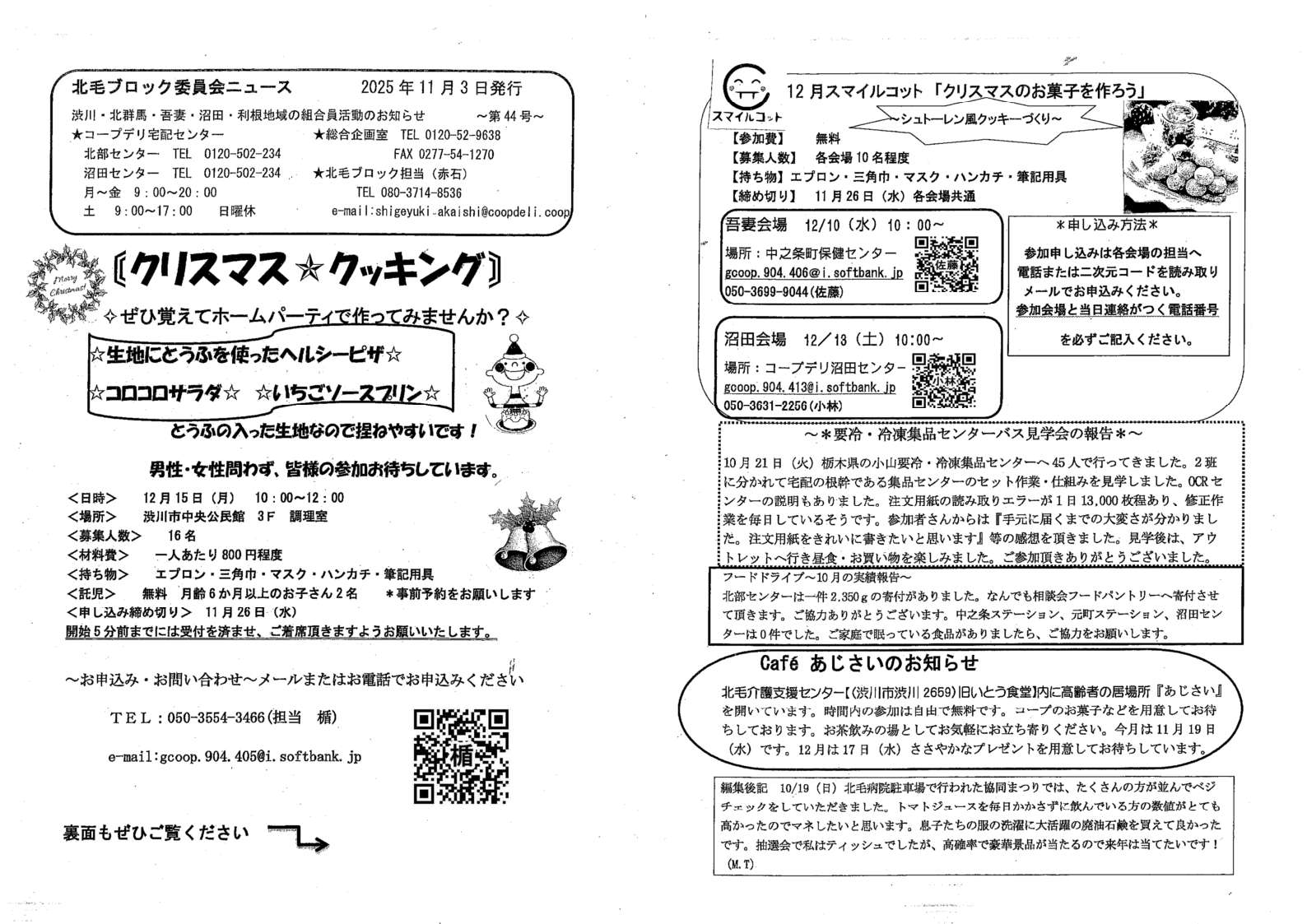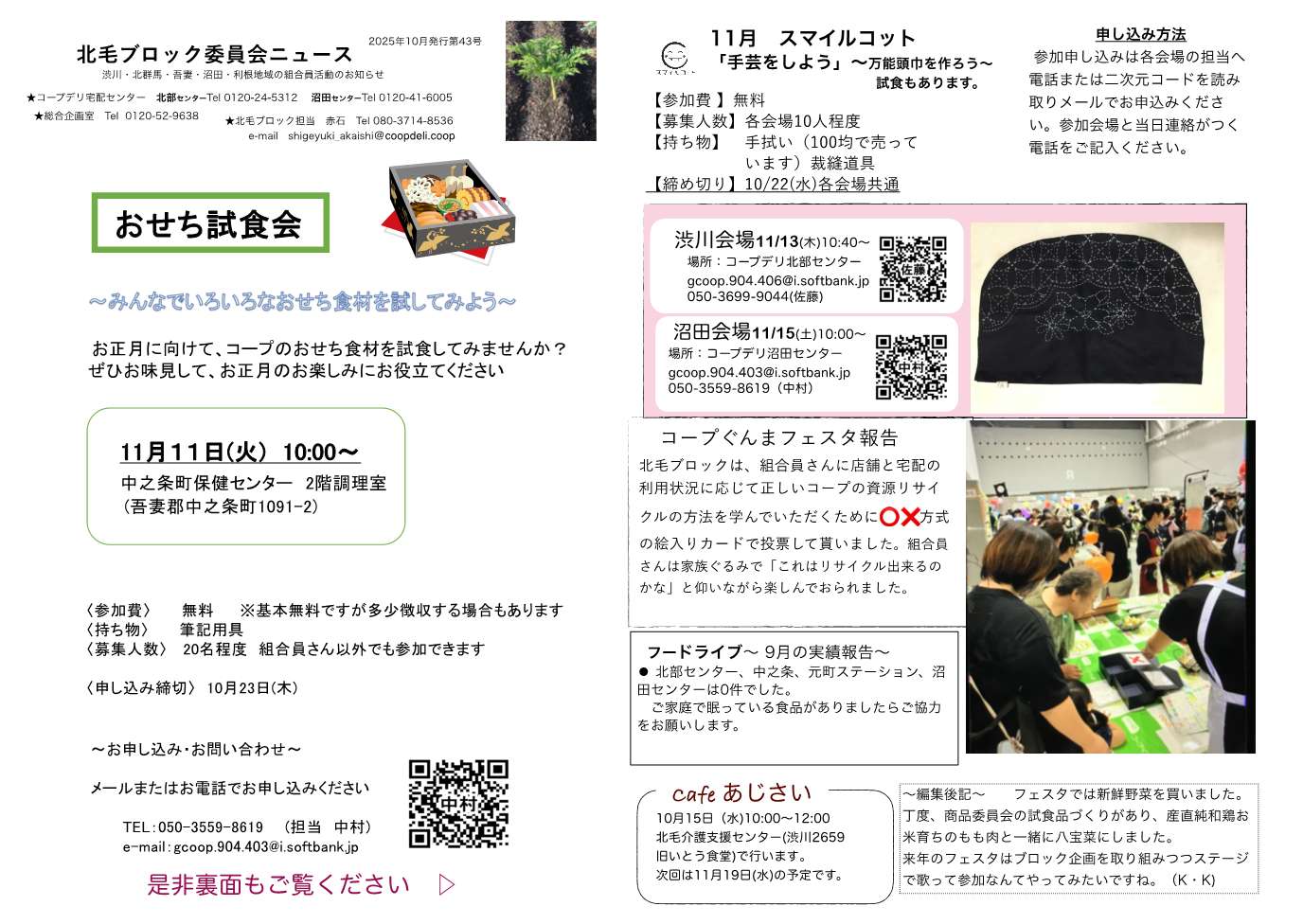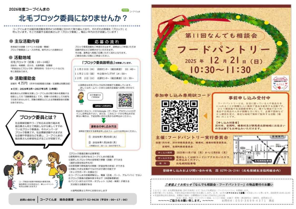 ブロック委員会ニュースは、コープぐんまの各ブロック委員(組合員)が月一回発行する、地域のイベントやくらしに役立つ情報、機関運営等をお知らせするニュースです。
