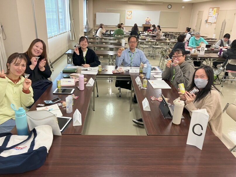 今回はブロック委員の経験年数ごとにグループに分かれ、2025年度上期の活動内容や、疑問に思う事、活動にあたっての困りごとや、解決方法など活発な意見交換・情報交換ができ、おすすめのお菓子を食べながら楽しく行うことができました。