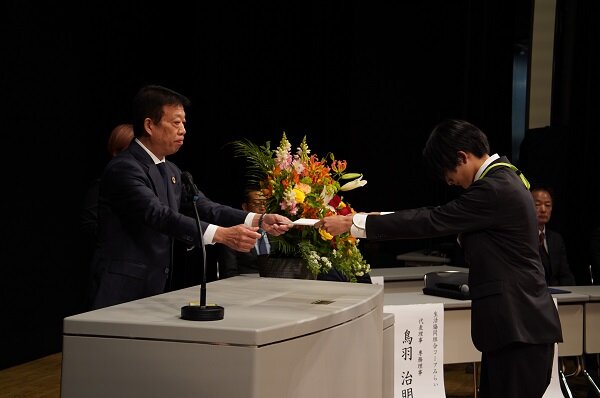 山口専務理事より壇上で一人ひとりに辞令が授与されました